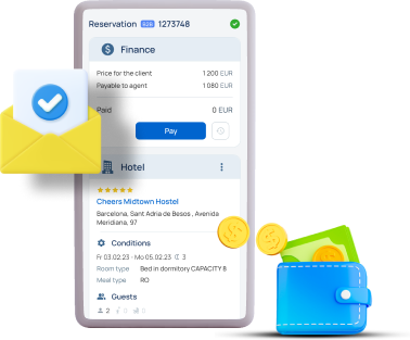 Create a booking and send the client a payment link without incurring acquiring costs, while receiving your commission to your agent account wallet, with the option to withdraw funds or use them for payment of new requests.